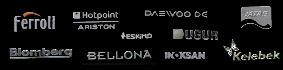 Başta beyaz eşya grubunda yaygın kullanılmakta olan Damla ve Metal görünümlü logolar her segmente uygun 3D görünümlü seçenekleriyle mevcuttur. Dünyanın ileri gelen beyaz eşya üreticisi firmalarının kullanmış olduğu ağırlıkla Buzdolabı ve Kombi olmakla birlikte Kahve makineleri, Süpürge, Klima, gibi ürünlerde de kullanılabilmektedir.